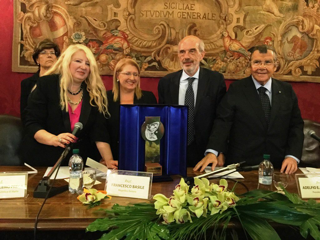 “Dedico questo riconoscimento a tutte le donne e alle ragazze della nostra regione euromediterranea, e alle loro alte e nobili aspirazioni a favore del benessere dei nostri popoli”. Ha esordito così, la Presidente della Repubblica di Malta, Marie Louise Coleiro Preca, nel suo discorso di accettazione della V edizione del premio internazionale Virdimura, che le è stato consegnato questa mattina nel corso di una cerimonia che si è tenuta nell’aula magna del Palazzo centrale dell’Università di Catania.