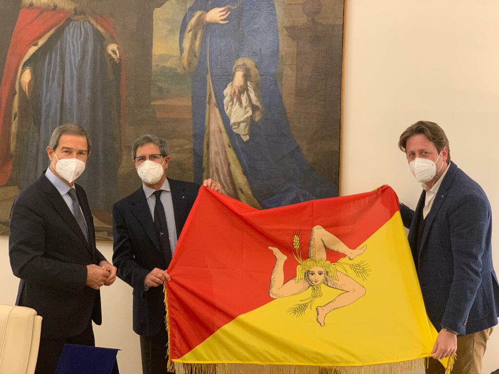 Il presidente della Regione Siciliana, Nello Musumeci e l’assessore allo Sport, Manlio Messina hanno infatti voluto donare la bandiera al presidente del Circolo della vela Sicilia, Agostino Randazzo, che è stato ricevuto a Palazzo Orleans.