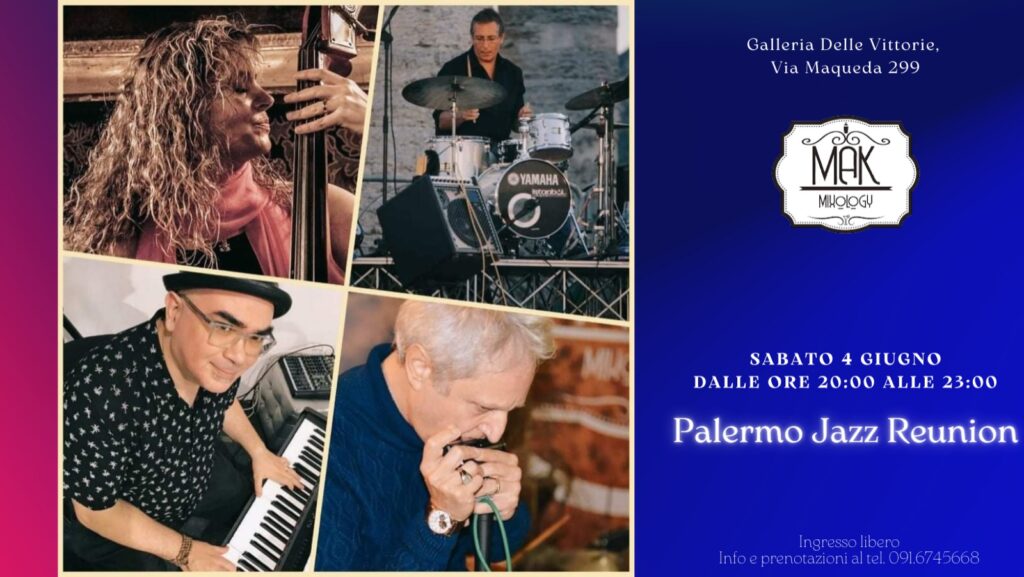Con “Palermo Jazz Reunion”, dalle 20 alle 23 di sabato 4 giugno alla Galleria delle Vittorie, torna una serata ricca di performance vivaci all’insegna del divertimento puro dato dalla concezione stessa del jazz, fondata sull’improvvisazione e sull’interplay.