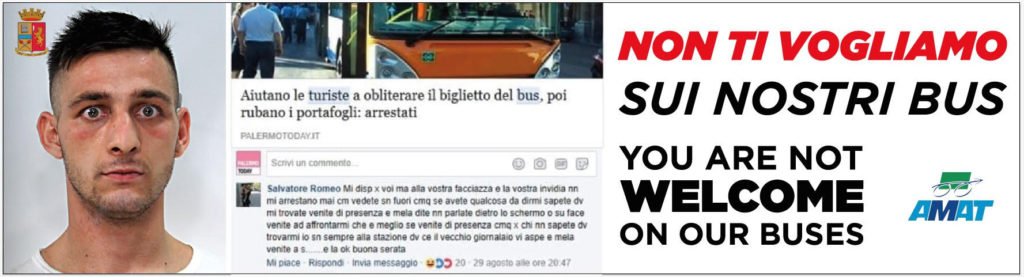 E’ diventato un caso social(e) la storia di Salvatore Romeo, il borseggiatore di 23 anni che, adesso, con il suo volto, compare sugli autobus 101 e 102 dell’Amat Palermo. “Non ti vogliamo sui nostri autobus” recita la scritta accanto alla sua foto segnaletica. Ma,oggi, lui ha rotto il silenzio ed espresso la propria posizione in merito alla vicenda che lo ha visto, suo malgrado, protagonista, rilasciando un’intervista a La Repubblica di Palermo.