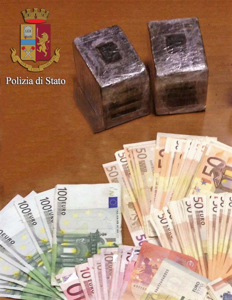 Inoltre, nell’armadio della camera da letto è stata trovata una busta in plastica contenente denaro, oltre 6.000 Euro, ritenuto provento dell’attività di spaccio e quindi sottoposto a sequestro; il cane “Yndira” ha poi indirizzato gli agenti verso un battiscopa in legno annesso alla cucina componibile, al cui interno era stato celato materiale utile al confezionamento e al taglio dello stupefacente, quali coltelli e tagliere entrambi intrisi di Hashish, due bilancini ed altri oggetti utili allo stesso scopo.
