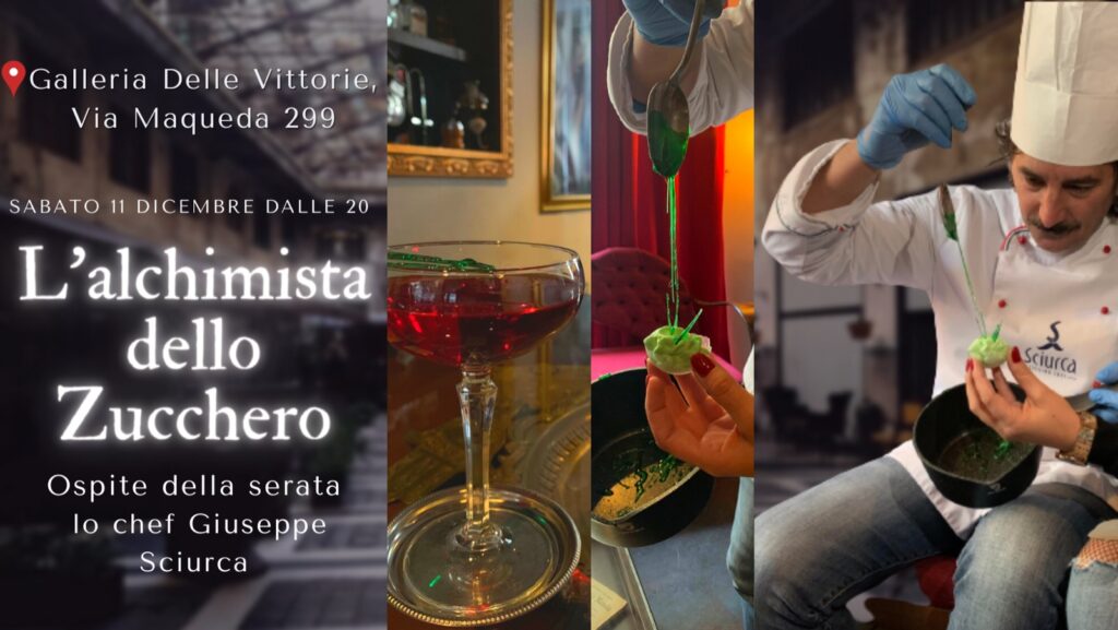 Non a caso si intitola “L’alchimista dello zucchero” l’evento sabato 11 dicembre, a partire dalle 20, ammanterà di fascino l’amatissimo cocktail bar della Galleria delle Vittorie grazie alla presenza dello chef Giuseppe Sciurca, artista della ristorazione con un estro che gli consente di cimentarsi con successo in questo campo, offrendo vere e proprie esperienze sensoriali attraverso il buon cibo e il buon bere.