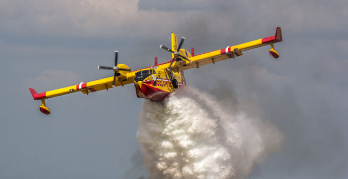 Canadair in azione in provincia di Palermo. Nel pomeriggio di sabato ad Alimena è divampato un forte incendio, dovuto alle calde...