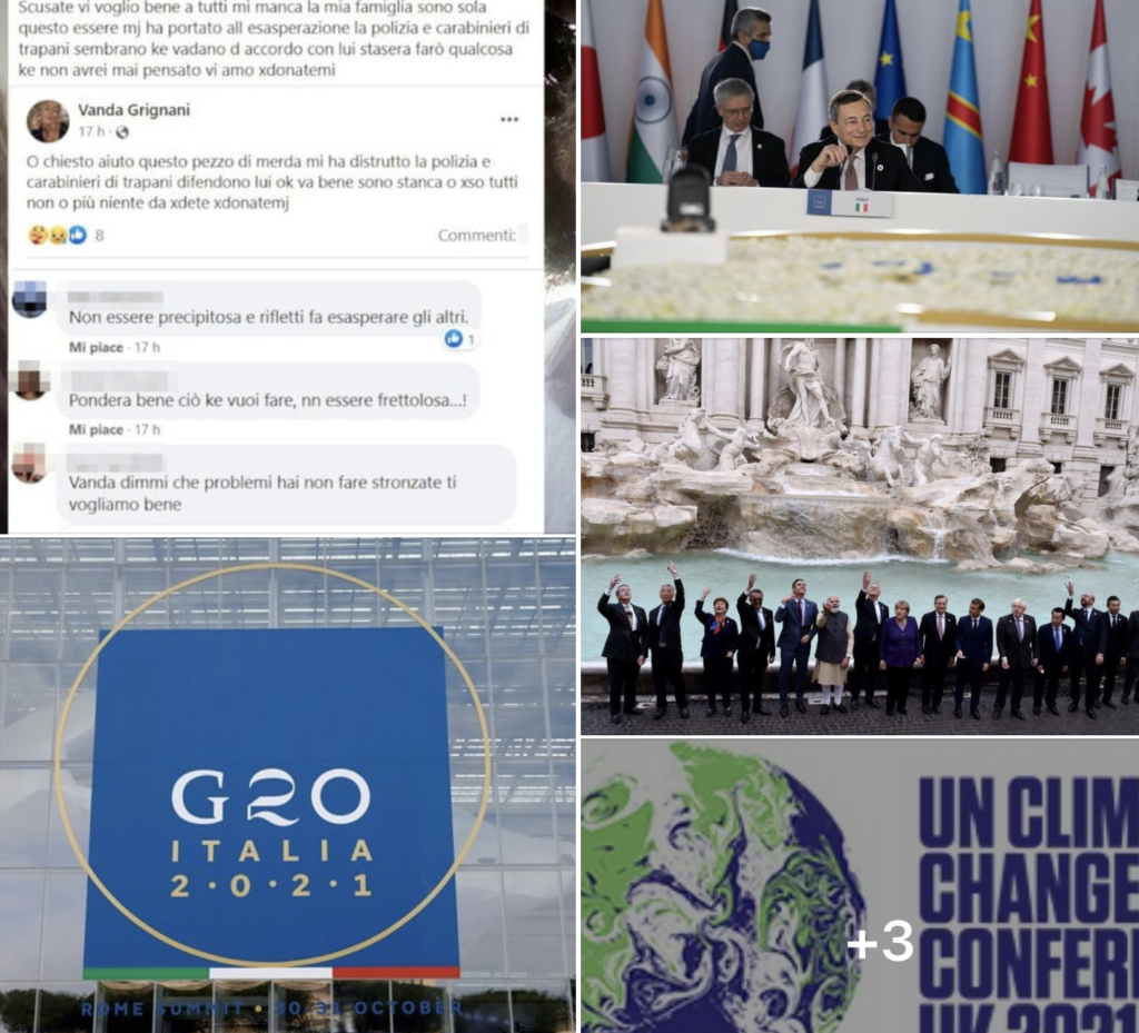 #Tanomattinale 1 novembre 2021: l’omicidio di Trapani annunciato su Facebook, G20, blabla, monetine e il trionfo di Draghi, al via Cop26, violenza e morte a Tokyo e Latina, nel 2021 vinciamo tutto, anche nel Football americano