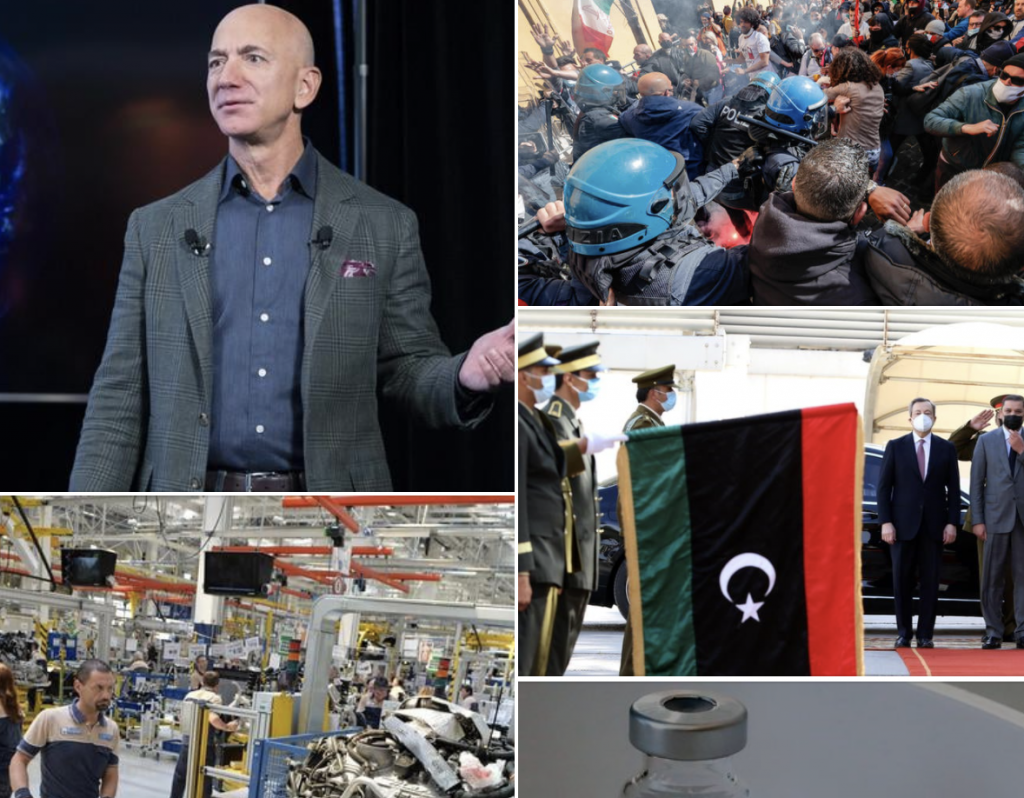 ieri siete stati moltissimi e io ne sono stato moltissimo felice e vi ringrazio assai. Oggi comincio con una notizia ANSA battuta stanotte alle 2,12 dalla redazione di New York con il titolo: “Il 2021 anno record per i paperoni”. La farò seguire, nel menabò di oggi, dall’altra di segno opposto sul fortissimo aumento dei disoccupati in Italia e poi dai tumulti a Montecitorio, a ulteriore conferma, qualora ce ne fosse bisogno, che una terribile e forse irrimediabile conseguenza del maledetto virus è l’allargamento della forbice delle disuguaglianze ovunque. Il numero dei miliardari nel mondo è dunque balzato a 2.755, ovvero 660 in più rispetto all’anno precedente. Complessivamente valgono 13.100 miliardi, 8.000 in più del 2020. E’ quanto emerge – scrive l’ANSA – dalla 35ma classifica annuale dei super ricchi di Forbes, nella quale di registrano 493 nuovi ingressi, circa uno ogni 17 anni, di cui 210 dalla Cina e da Hong Kong. Jeff Bezos, il signor Amazon, si conferma l’uomo più ricco del mondo, con una fortuna di 177 miliardi di dollari. La medaglia d’argento va a Elon Musk, con i suoi 151 miliardi.