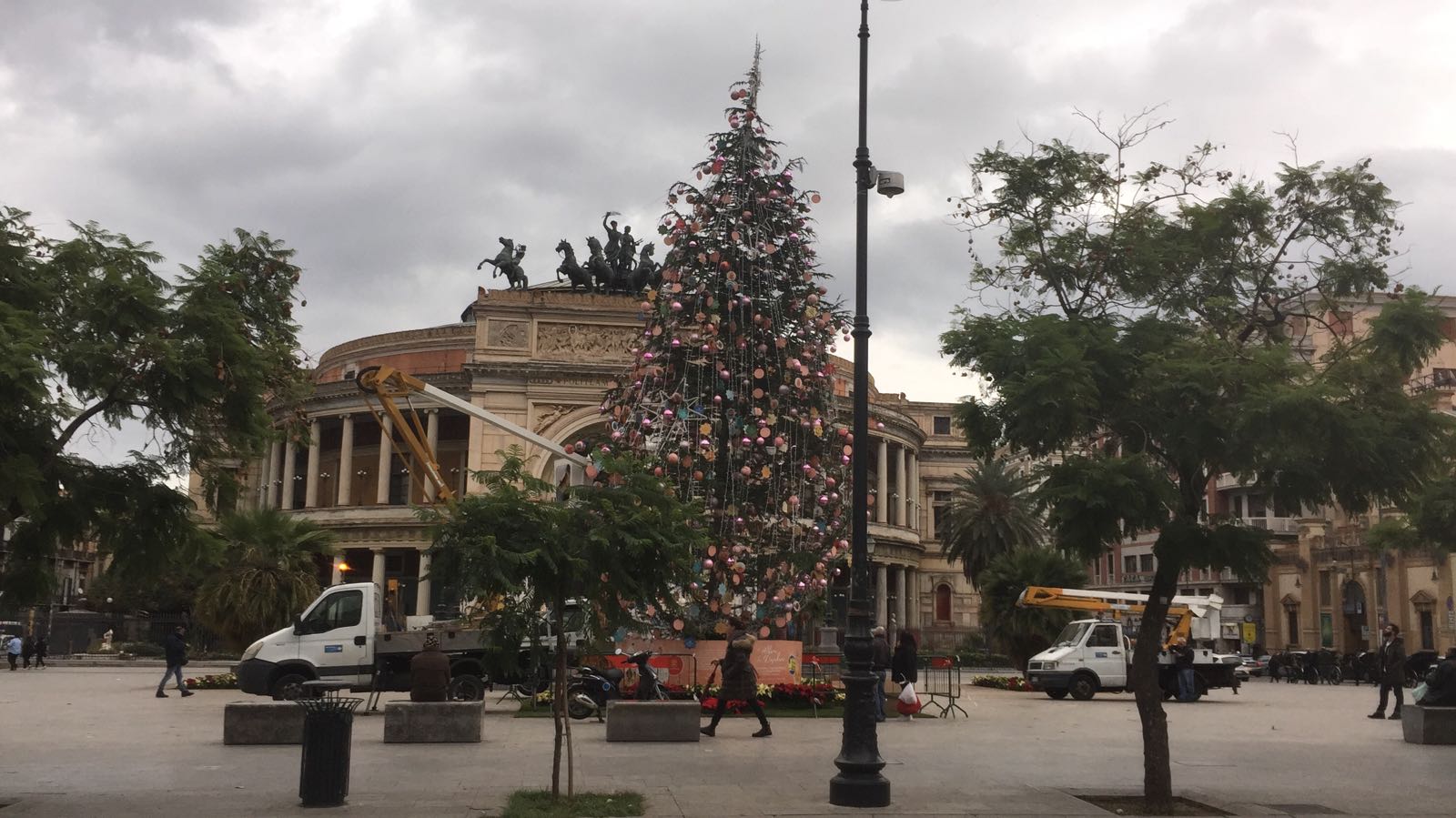 Albero di Natale a Palermo. Il tradizionale albero di Natale che sorge come ogni anno al centro di piazza Politeama a Palermo è stato addobbato. L’inaugurazione con l’accensione delle luci è prevista per venerdi 1 dicembre alle ore 17,30 alla presenza del sindaco di Palermo, Leoluca Orlando, un rappresentante della famiglia Thun e il direttore generale Giovanni Migliore primario del reparto di Oncoematologia pediatrica Paolo D’Angelo dell’Ospedale Civico di Palermo.