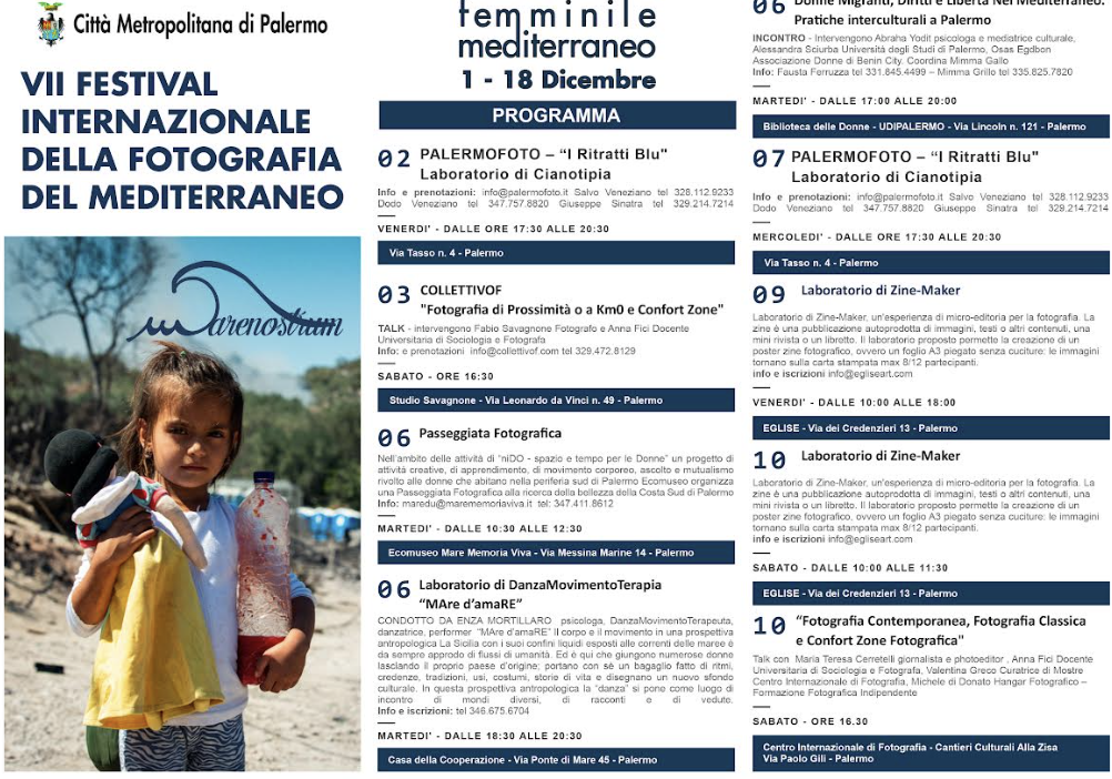 E’ giunta alla VII edizione il Festival Internazionale della fotografia del Mediterraneo “Marenostrum”. L’edizione di quest’anno, che si svolgerà a Palermo dal 1° al 18 dicembre, organizzata dall’Associazione i Vicoli del Mediterraneo, con il patrocinio della Città Metropolitana di Palermo, mette al centro ancora una volta il Mediterraneo e le sue storie, puntando l’attenzione sulle donne.