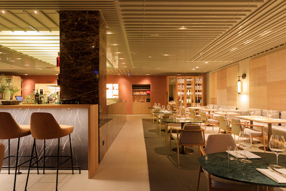 Gli interni, disegnati dallo studio spagnolo Tarruella Trenchs seguono un’idea di classica contemporaneità con colori caldi ispirati a olio, grano e sale, i tre elementi simbolici della cucina di Sultano.