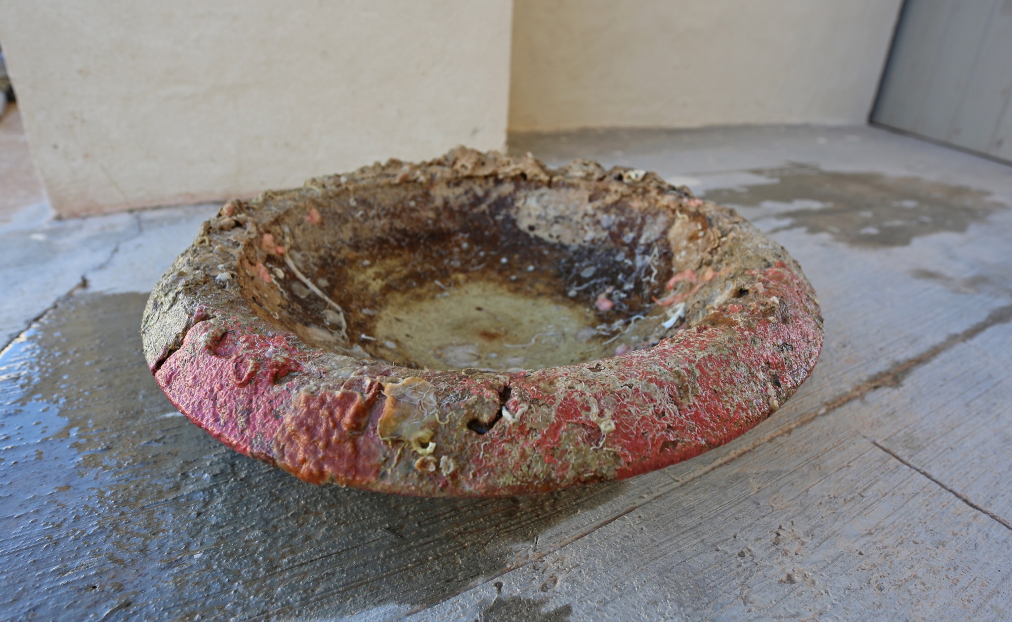 Decorazione finora nota soltanto nel rostro di Acqualadroni che la Soprintendenza del Mare recuperò alcuni anni fa nelle acque di Capo Rasocolmo presso Messina ed oggi esposto nella città dello Stretto. Tale decorazione ci permetterà di individuare la zona di provenienza del rostro grazie ad un’analisi iconografica che condurremo a restauro terminato. Anche il rostro Egadi 12 presenta un’iscrizione sulla guaina superiore, ma al momento non siamo in grado di identificarne la natura.