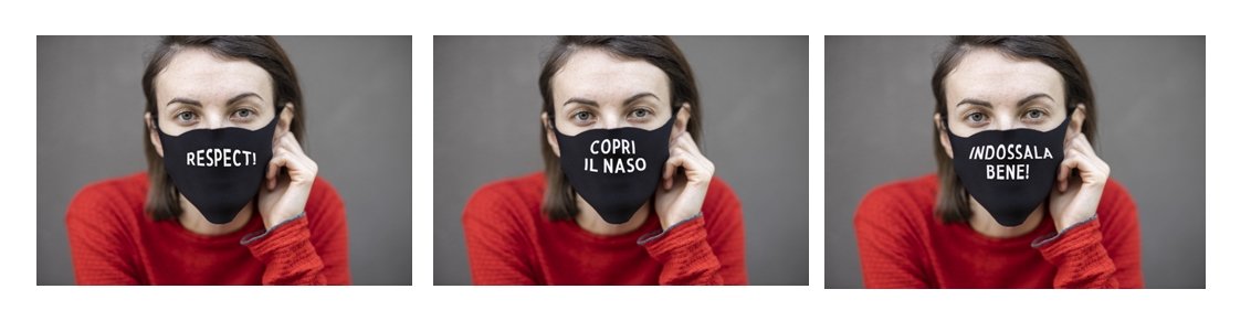 Una soluzione a questa ‘inibizione’ arriva dai pubblicitari italiani capeggiati da Marco Piaggio, creativo del gruppo di comunicazione Purple & Noise PR, che propone la “Respect!”, una semplicissima mascherina con, stampata o – volendo realizzarla a costo zero – manoscritta, con un semplice pennarello, con la dicitura “RESPECT!”, “Io rispetto te. Tu rispetta me”. O, dedicata ai parzialmente indisciplinati, con la scritta: “INDOSSALA BENE”, “COPRI IL NASO”.