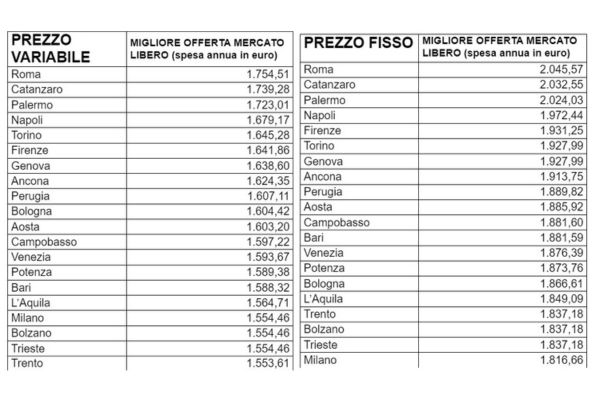 Nello specifico l’associazione ha messo a confronto le migliori offerte reperibili sul “Portale offerte” di Arera per una famiglia che consuma 1.400 metri cubi di gas all’anno.