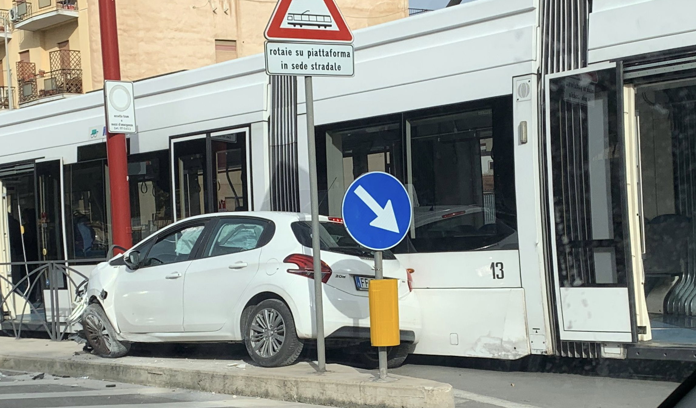 Una Peugeot bianca si è scontrata con il tram in transito provocandone il deragliamento, non è ancora chiara la dinamica dell’incidente, forse l’auto ha provato ad attraversale la linea ferrata nonostante stesse sopraggiungendo il mezzo oppure nel senso contrario a quello consentito.