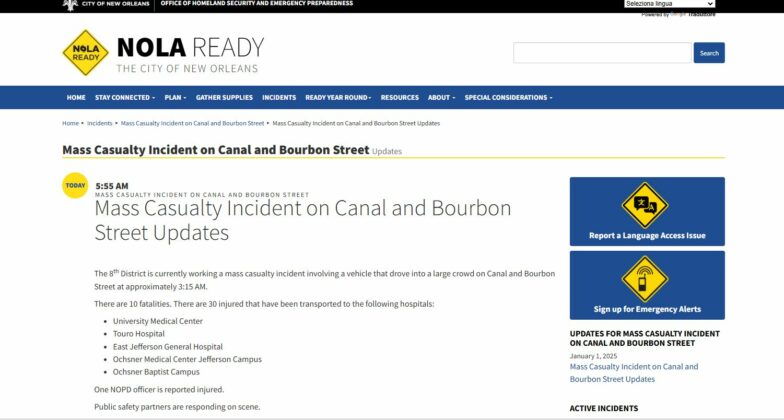 Il Governatore della Louisiana. Jeff Landry, sui social parla di “Un orribile atto di violenza” e ha invitato “a pregare per tutte le vittime”.