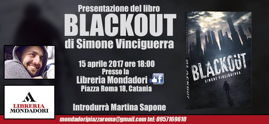 Questo è ciò che succede a Niat, il protagonista di “Blackout“, scritto dallo youtuber Simone Vinciguerra, che verrà presentato sabato 14 aprile alle ore 18:00 da Martina Sapone, presidente dell’associazione Allievi della Scuola Superiore di Catania, presso la libreria Mondadori Bookstore (Piazza Roma, 18 – Catania).