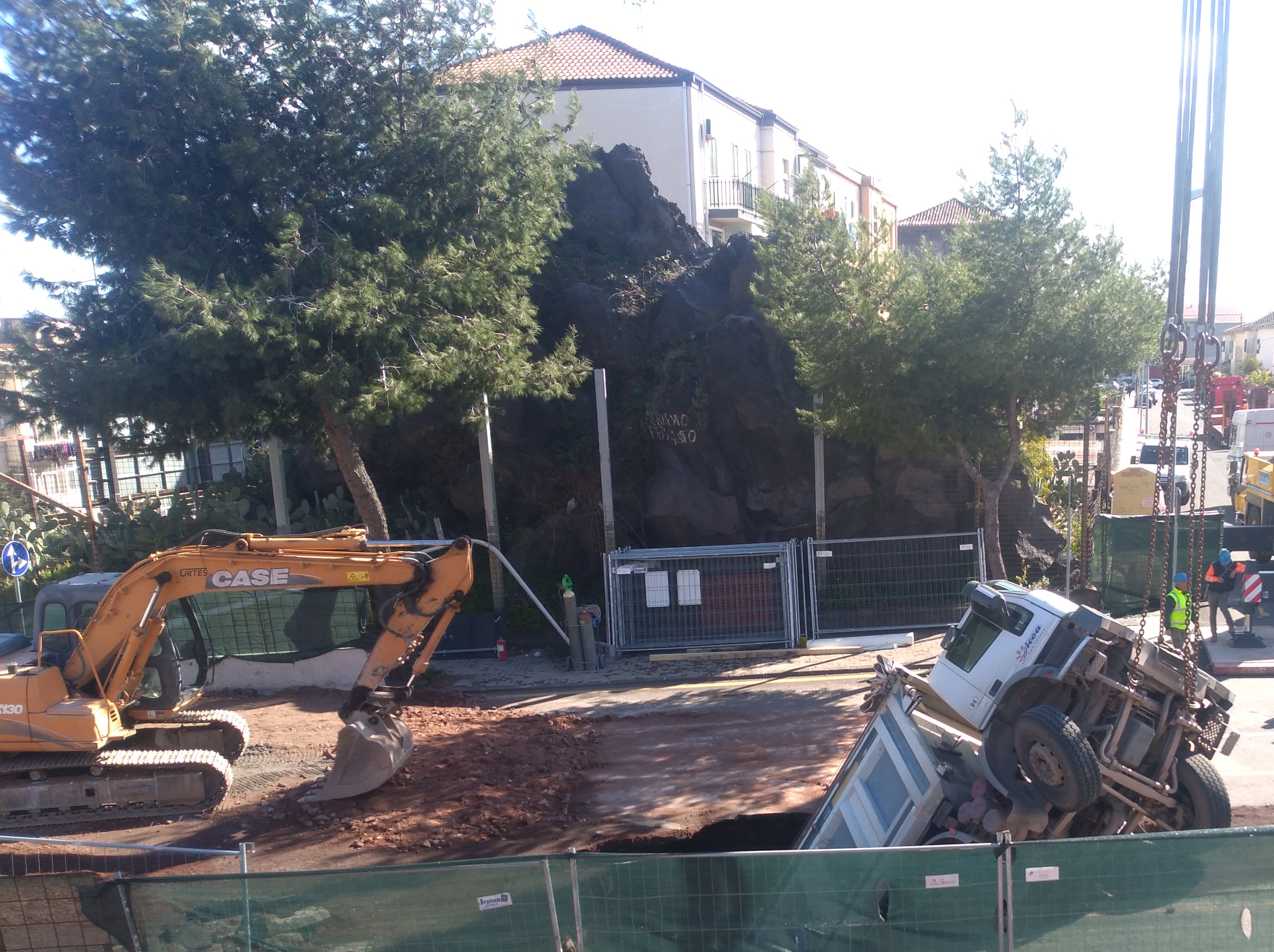 Se le conseguenza di questo episodio non sono state drammatiche per la pubblica incolumità lo si deve al fatto che il camion è sprofondato all’interno dell’area delimitata dal cantiere.