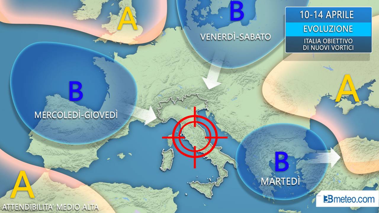 “Dopo la fase decisamente calda e secca di marzo al Centronord, ora la Primavera ci mostra il suo lato più capriccioso. Ci attende una settimana decisamente dinamica e instabile, con frequenti acquazzoni e temporali e clima spesso fresco” – lo conferma il meteorologo di 3bmeteo.com Edoardo Ferrara che spiega – “colpa di una circolazione di bassa pressione che resterà ben radicata sul Mediterraneo e gran parte dell’Europa centrale, Italia inclusa.