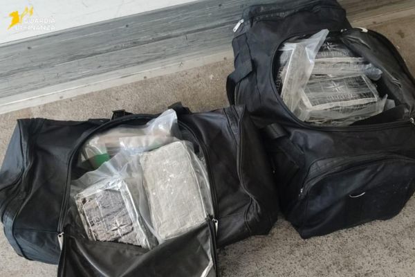 L’ispezione ha dato rapidamente esito positivo: nascosti tra il fondo del semirimorchio e le pedane della merce, sono stati rinvenuti due borsoni scuri contenenti numerosi panetti di cocaina. Una verifica speditiva tramite narcotest ha confermato la natura stupefacente del carico.