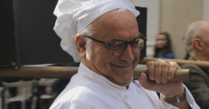 Ma cosa ci faceva Gino Astorina in via Etnea, vestito da pasticciere, mentre portava una teglia gigante? Sarà stato un...