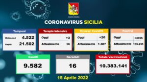 Coronavirus 16 aprile – Ecco il quadro riepilogativo dell’emergenza Covid in Sicilia nelle ultime 24 ore: il dato è aggiornato alle ore 17.00 di oggi, sabato 16...