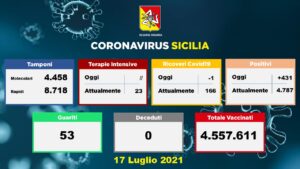 Coronavirus 17 luglio – Ecco il quadro riepilogativo dell’emergenza Covid in Sicilia nelle ultime 24 ore: il dato è aggiornato alle...