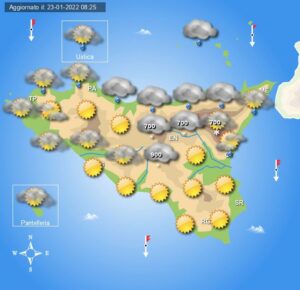Locali addensamenti in mattinata sulle coste settentrionali dell’Isola, sole prevalente altrove; al pomeriggio le nubi interesseranno i settori nord orientali,...
