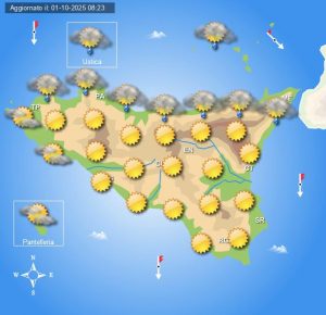 Nubi sparse e schiarite nel corso della giornata su tutta l’Isola con piogge e acquazzoni sparsi sui settori settentrionali della...