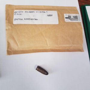 TORINO (ITALPRESS) - Una busta gialla con all'interno un proiettile, indirizzata al sindaco di Torino, Chiara Appendino, e' stata recapitata...