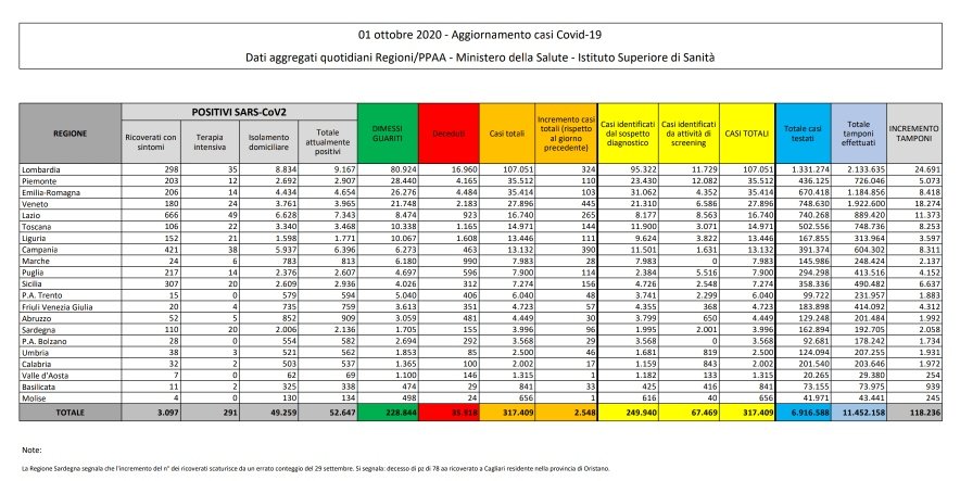 • Coronavirus, i dati della Sicilia dell’1 ottobre: 156 nuovi contagi
