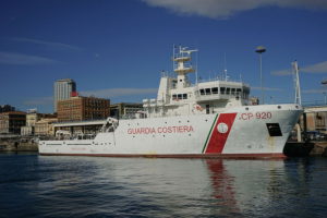CATANIA (ITALPRESS) - La nave 'Gregoretti' della Guardia Costiera italiana, che ha a bordo 135 migranti soccorsi in mare, e'...