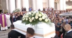 BRESCIA (ITALPRESS) - Alle 10.25 il feretro di Nadia Toffa ha fatto l'ingresso nella cattedrale di Brescia in piazza Paolo...