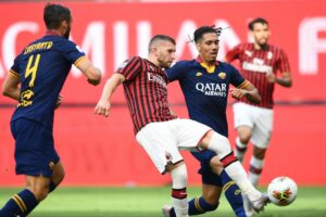 MILANO (ITALPRESS) - Sorride il Milan, piange la Roma. Bastano i gol di Rebic e Calhanoglu alla squadra di Pioli...
