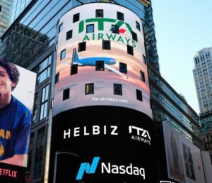 MILANO (ITALPRESS) - Helbiz e il Nasdaq hanno dato il benvenuto al primo volo di Ita Airways a New York...