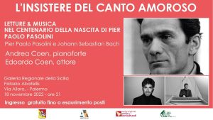 In occasione del centenario della nascita di Pier Paolo Pasolini, poeta, scrittore, regista, sceneggiatore, attore e drammaturgo, la galleria regionale...
