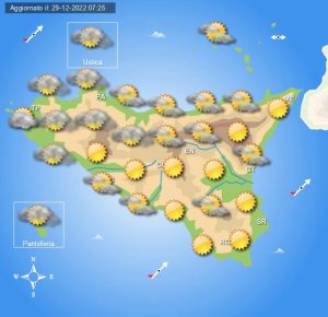 Al mattino nuvolosità alternata a schiarite. Al pomeriggio qualche addensamento sui settori occidentali dell'isola, sereno altrove. In serata attese velature...