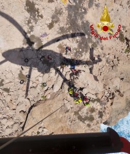 Soccorso alpino e speleologico siciliano e 82° Csar dell'Aeronautica militare in azione a Lampedusa (Agrigento) per recuperare una quarantina di...