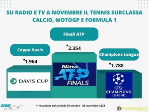 ROMA (ITALPRESS) – Gioco, partita, incontro per il tennis sui media italiani: le ATP Finals di Torino (2.354) e Jannik...