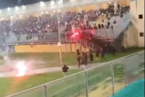 Momenti di tensione ieri sera allo stadio Euganeo di Padova durante l’intervallo della finale di andata di Serie C tra...