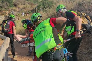Intervento del Soccorso Alpino e Speleologico Siciliano nella Riserva Naturale Orientata dello Zingaro (Trapani) per recuperare un escursionista straniero ferito....