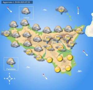 Sabato: Al mattino piogge sparse sulla Sicilia nord-orientale, soleggiato altrove. Al pomeriggio non sono attese variazioni di rilievo. In serata...