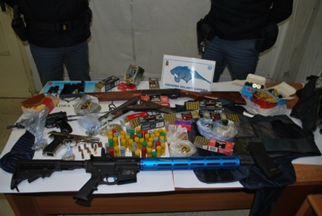 Gli agenti della volanti della polizia di Stato di Catania li hanno bloccati dopo un inseguimento. La caccia si è conclusa dentro un edificio dove sono stati trovati due borsoni contenenti un piccolo arsenale. Sono stati sequestrati una mitraglietta mod. M&P 15 Tony Sistem Component, con matricola abrasa; un fucile cal.12 marca “Benelli” con matricola abrasa; un fucile doppietta cal.16 con canne e calcio tagliate tipo “canne mozze”; una pistola mitragliatrice cal.7,65 riportante la scritta “Salve Blanc”; una pistola marca “Bruni” mod.92 modificata; 6 caricatori e oltre 1000 cartucce. Trovati anche un giubbotto antiproiettile, una fondina e due telefoni cellulari. I quattro adesso si trovano in carcere.