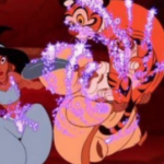 In questo cartone, invece, la questione è completamente differente. E devo ammettere a malincuore che pochi saranno riusciti a notare il dettaglio che svela infine la vera natura di Rajah. Quando finalmente riesce a liberarsi dalla magia di Jafar, la tigre mostra le sue orecchie reali.