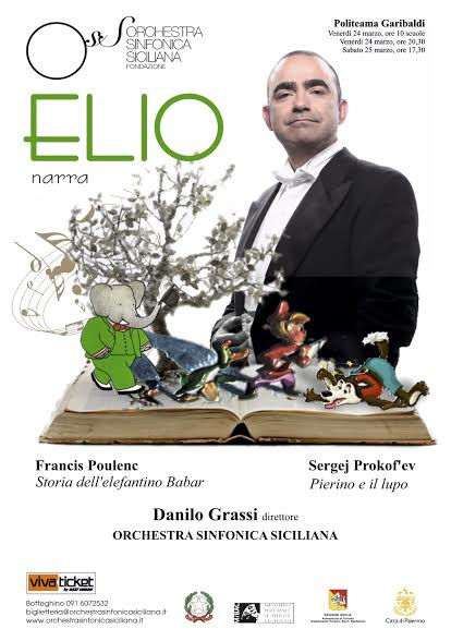 Elio è lo straordinario narratore di due popolari classici per la gioventù composti da Poulenc e Prokof’ev, La storia dell’elefantino Babar e Pierino e il lupo, in scena al politeama Garibaldi venerdì 24 marzo (20,30) e sabato 25 marzo 2017 (17,30), con l‘Orchestra Sinfonica Siciliana diretta da Danilo Grassi.