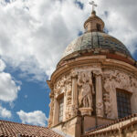 Il Convento del Carmine Maggiore, antico complesso religioso, fondato dall’ordine dei Carmelitani, domina il mercato storico del quartiere Ballarò a Palermo. La cupola, con il suo straordinario apparato decorativo in stucco e maiolica, costituisce una delle espressioni architettoniche e artistiche più significative del Barocco palermitano. La chiesa seicentesca, inoltre, custodisce opere di rilevante interesse, quali i due altari monumentali – opera giovanile di Giacomo Serpotta – un meraviglioso coro ligneo, dipinti di insigni pittori siciliani del Cinquecento e del Seicento e una cappella del Trecento. Questa testimonia l’antica fondazione del convento il cui cuore è un pregevole chiostro cinquecentesco.