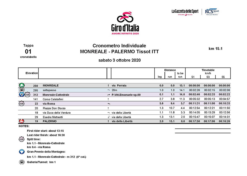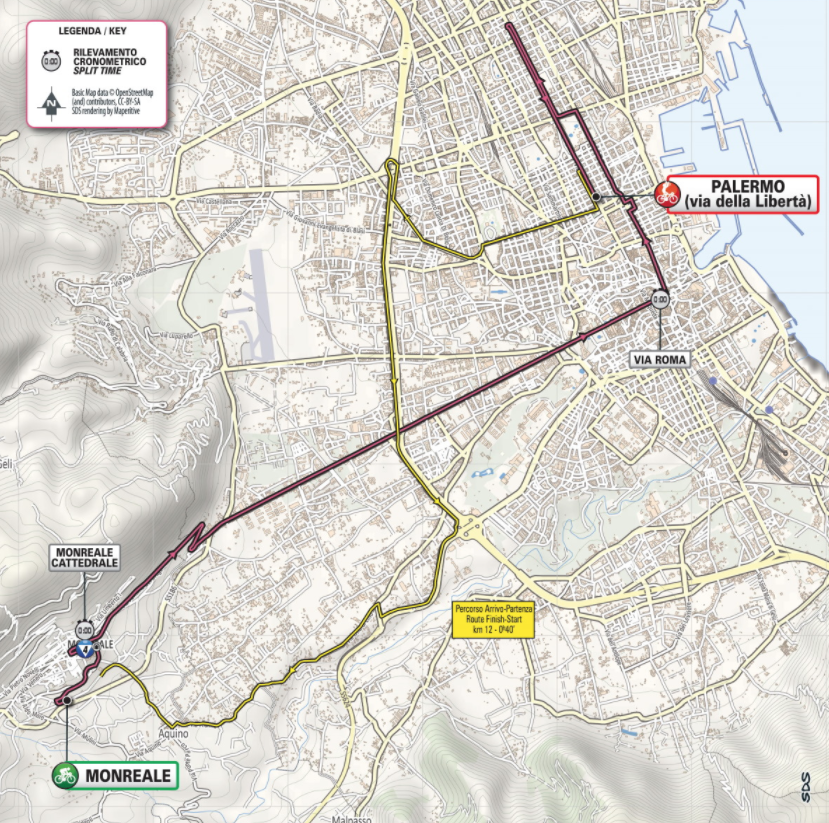 Da Monreale a Palermo: il primo atto dell’edizione 103 della Corsa Rosa. Il Giro d’Italia torna in Sicilia, che ospiterà le prime 4 tappe e assegnerà oggi (sabato 3 ottobre) la prima maglia rosa al termine di una cronometro individuale di 15,1 chilometri che da Monreale porterà i corridori ad attraversare il centro del capoluogo siciliano.