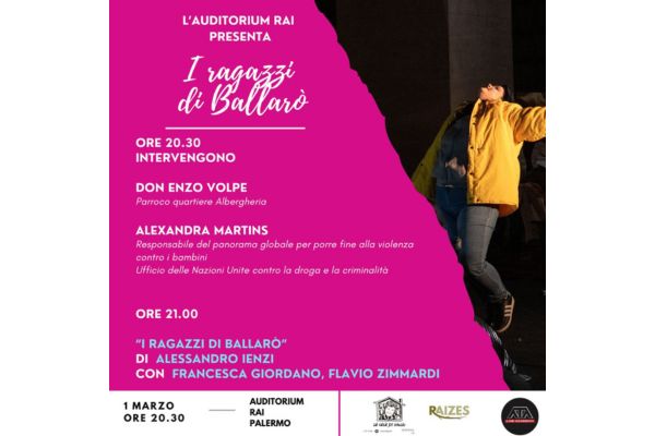 Portare il dramma della dipendenza da sostanze stupefacenti in scena non è per niente facile perchè si rischia di riportare stereotipi e riproporre tutti quei pregiudizi che condannano i giovani prima ancora di sapere perchè avere deciso di imboccare quel tunnel. Per capire quali sono i motivi che trascinano ragazzi sempre più giovani verso l’abisso delle dipendenze da sostanze, alle 21 di sabato 1 marzo ci si ritroverà all’Auditorium della sede Rai di Palermo per riflettere insieme aiutati da una particolare testo teatrale come “I Ragazzi di Ballarò”, voluto dall’associazione “La casa di Giulio”, il cui debutto è stato all’Archivio storico di Palermo domenica 12 gennaio, grazie al sostegno della Presidenza dell’Assemblea Regionale Siciliana.