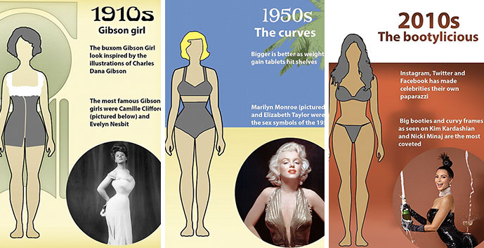 Nel corso dei secoli 20 e 21, l’idea corrente principale della “forma del corpo perfetto” delle donne è variato.