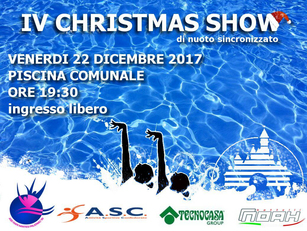 IV Christmas Show, per questa edizione sessanta atlete di tutte le categorie del nuoto sincronizzato, dai 6 ai 25 anni, si esibiranno venerdì 22 dicembre dalle ore 19.30, alla piscina comunale di Palermo, nel “Christmas show”, organizzato dalla società sportiva Rari nantes di Palermo.