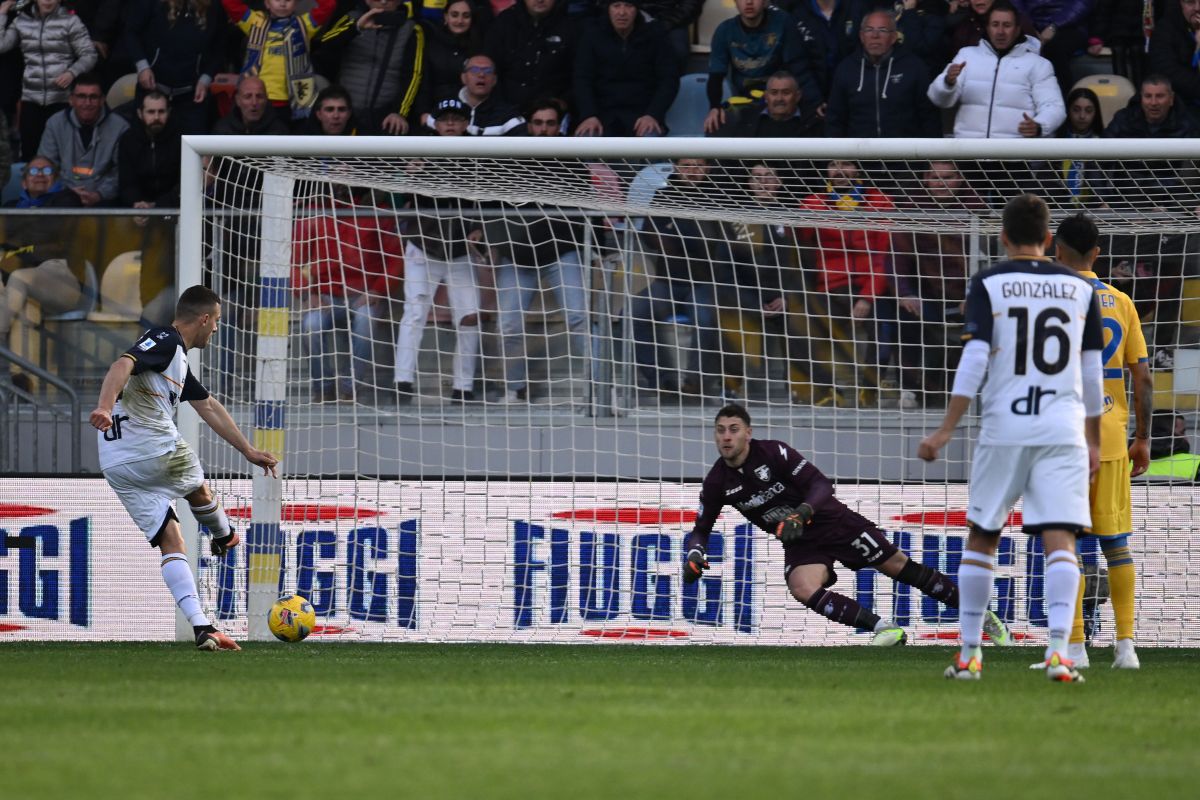 L’inizio è in salita per i ciociari che, dopo appena quattro minuti, perdono Harroui per un problema muscolare. Nel finale di tempo i padroni di casa alzano i giri del motore e, dopo un paio di minuti di pressione, Cheddira in pieno recupero segna la rete dell’1-0. In seguito ad una mischia in area di rigore, l’ex Bari approfitta dell’uscita fuori tempo di Falcone per portare il Frosinone in vantaggio. Nella ripresa le squadre si allungano, regalando al pubblico una partita più divertente ed intensa. La svolta in favore dei salentini arriva al 57′, quando Krstovic si avventa sullo sciagurato retropassaggio di Zortea e viene abbattuto in area da Cerofolini. Guida concede il rigore, ma Rafia lo sbaglia. Il Var, però, ravvisa l’ingresso in area di due giocatori del Frosinone prima della battuta; il rigore viene perciò ripetuto e stavolta segnato. Krstovic centra il palo prima e la schiena di Cerofolini poi, sfortunato il portiere ciociaro. Tre minuti dopo il gol dell’1-1, il Frosinone reagisce e colpisce l’incrocio dei pali, grazie al tiro di Gelli;