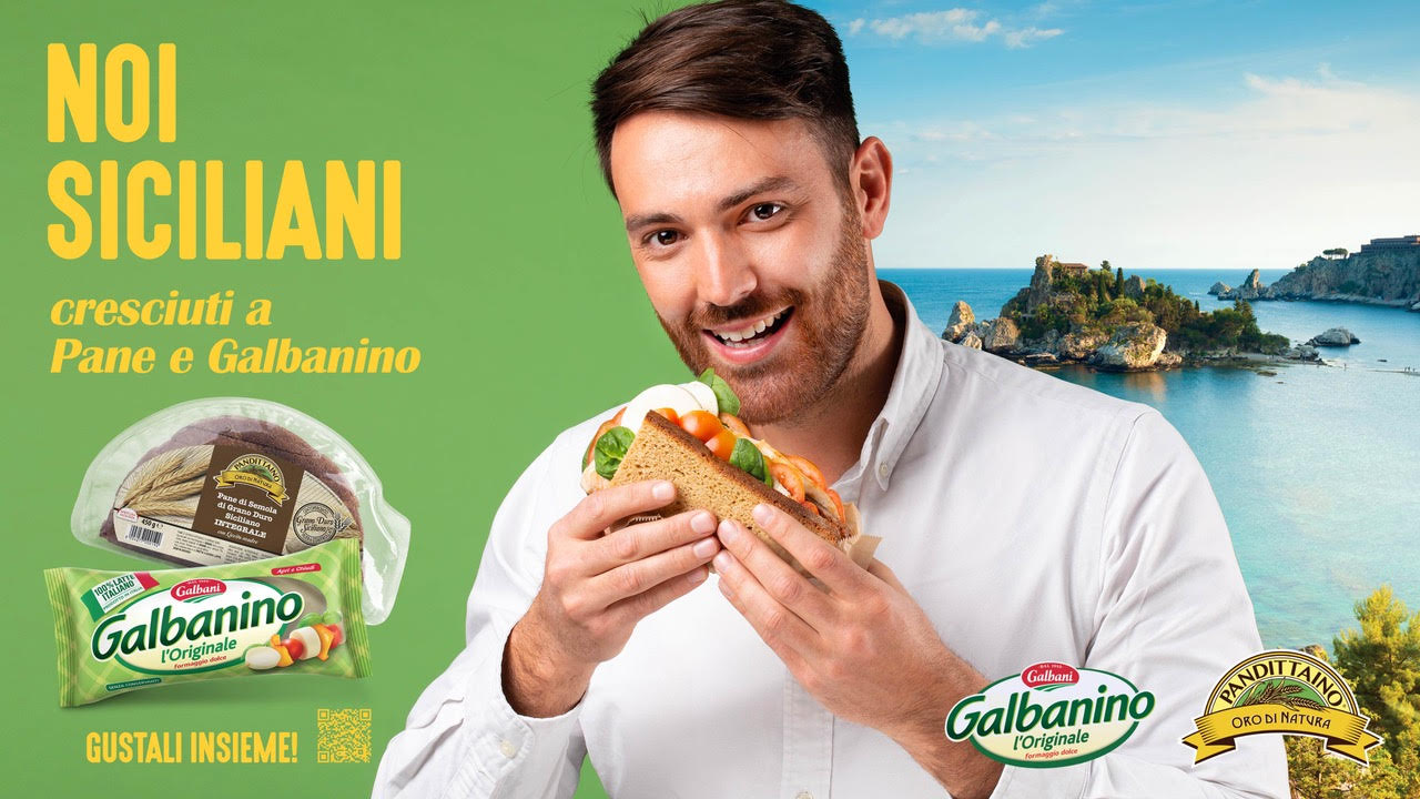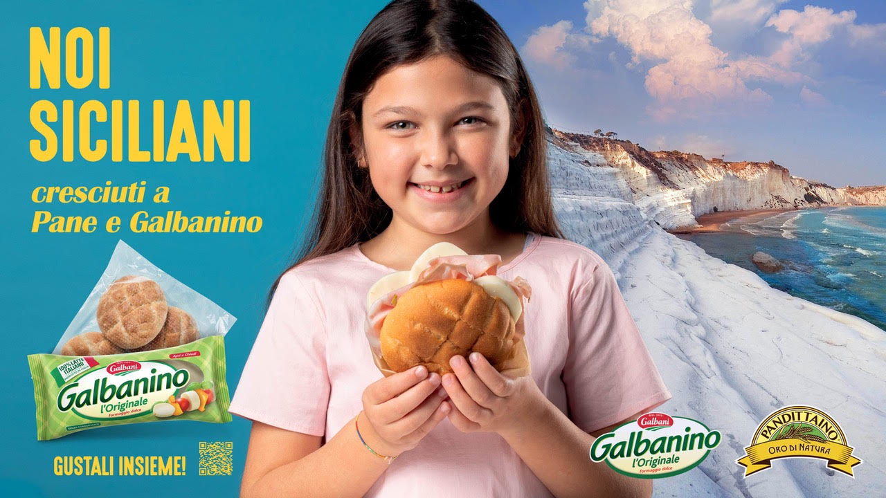 A questa campagna di co-marketing (la prima per Galbanino a livello territoriale) è abbinato il claim “Noi siciliani, cresciuti a pane e Galbanino” che rimanda a tradizioni e abitudini antiche che abbracciano un ampio target, dai più piccoli ai più grandi. Su pendolini stopper e calpestabili adesivi all’interno degli store siciliani saranno riportati la scalinata di Caltagirone, il borgo marinaro di Marzamemi, la Scala dei Turchi (Agrigento), l’Isola bella di Taormina, i mulini e le saline dello Stagnone di Trapani associati a volti di gente comune intenta a gustare il  Galbanino l’Originale, il formaggio a pasta filante dall’iconica forma cilindrica, nei formati da 230g, 270g, 550g e nei formati famiglia da 850g e 930g, insieme alle referenze di Pandittaino che per questa attività ha scelto il tradizionale pane di semola di grano duro siciliano a fette, nella versione classica e integrale, la Muffoletta e il Maxi Burger di farina di grano tenero.