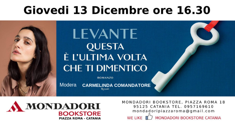 La presentazione dell’ultimo romanzo di Levante “Questa è l’ultima volta che ti dimentico” (Rizzoli) inizierà alle 16:30 e sarà moderato da Carmelinda Comandatore, Digital Strategist di brand di successo e volti noti del mondo artistico e culturale.